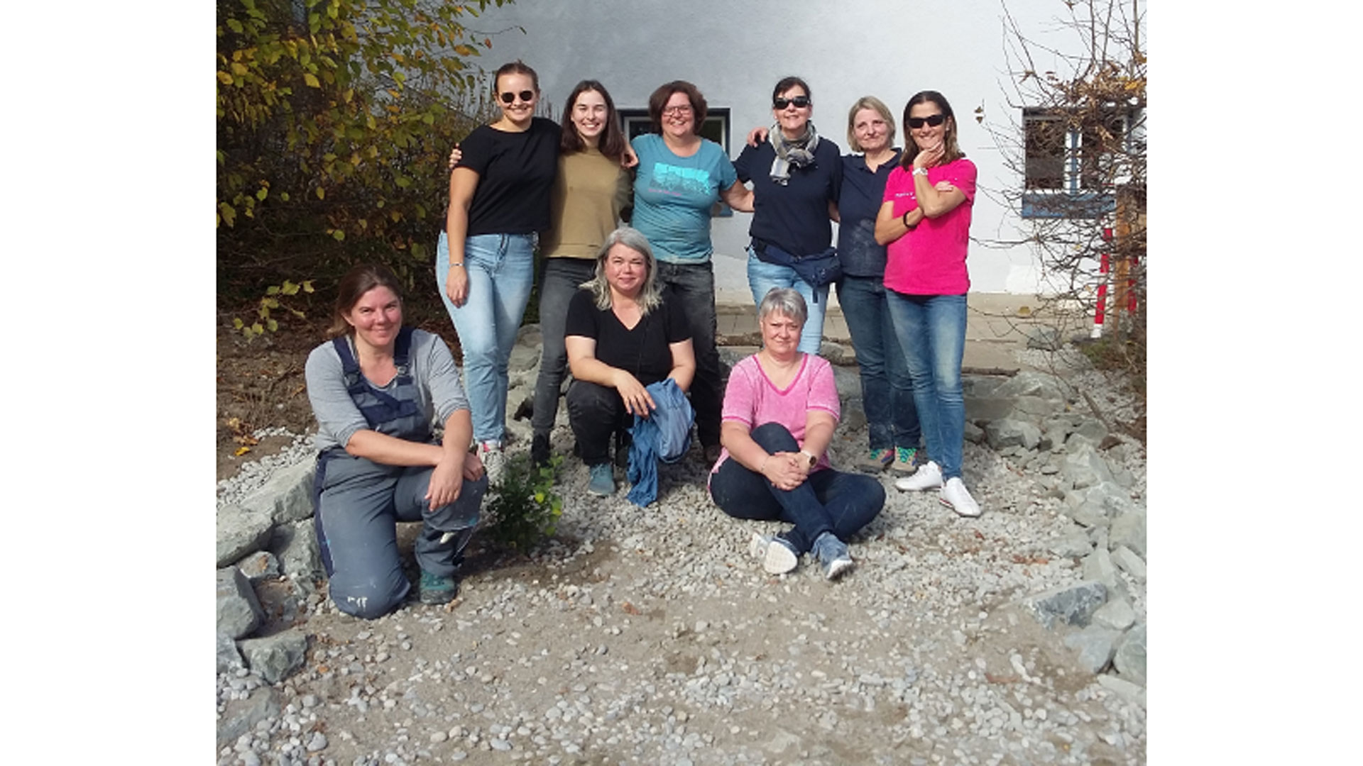 Bei der Wahl des Projektes, das unterstützt werden soll, gibt es keine Vorgaben. Im Jahr 2021 hatten wir eine Heckenpflanz-Aktion des LBV (Landesbund für Vogel- und Naturschutz Kempten-Oberallgäu) durchgeführt. Dies war eine rundum gelungene Aktion für unser Team. Daher haben wir uns entschieden, auch im Jahr 2022 eine ähnliche Aktion mit dem LBV im Allgäu durchzuführen. Diesmal galt es, auf der Grünfläche der Maria Ward Schule in Kempten mit Kies und Sand eine Magerfläche für Wildblumen anzulegen und eine Trockenmauer aus Wasserbausteinen zu bauen.