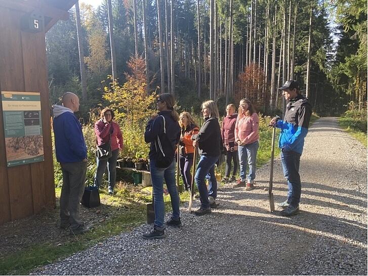 Bei der Fledermaushütte angekommen, war es unsere Aufgabe, es den Tieren etwas schöner zu machen. Damit sich die Fledermaus während ihrer Flüge per Echolot orientieren kann, benötigt sie klare Strukturen. Unsere Hecke sollte als eine Art Landebahn für den Anflug des Zuhauses dienen. Zudem verwendeten wir für die Hecke nur heimische Pflanzen wie Weißdorn, Berberitze und das gemeine Pfaffenhütchen. Damit taten wir auch den heimischen Insekten und Wildbienen etwas Gutes, die sich über die Jahrhunderte an die hiesige Vegetation gewöhnt haben. Und über mehr Insekten freuen sich natürlich auch wieder die Vögel – vor allem natürlich unsere Fledermäuse. Gesagt getan, begann jeder ein etwa 30x30cm großes Loch auszuheben. Dieses wurde zum Teil mit Blumenerde gefüllt, bevor wir dann die Pflanzen einsetzten. Aufgrund des naheliegenden Teiches, der unsere gepflanzten Hecken mit ausreichend Wasser versorgt, kann man die heimischen Gewächse getrost sich selbst überlassen. Da alle kräftig mit anpackten, waren wir mit den verfügbaren Pflanzen schnell fertig. Die eine oder andere unter uns munkelte, dass wir wohl auch mehr geschafft hätten. Nichtsdestotrotz konnten wir für die lokale Fledermauspopulation einen Beitrag leisten – und haben vor allem viel gelernt.